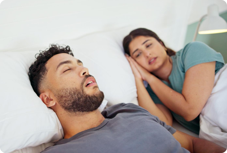 Snoring generally happens when air cannot move freely through your nose and throat. This prohibited flow, causes the surrounding tissues to vibrate, which produces sleep-disturbing sound which we call snoring. Snoring also increases the chance of having disrupted sleep for you or your partner. This can lead to fatigue and difficulty concentrating. It can also increase the risk of some health problems.